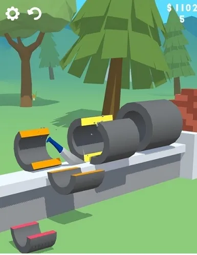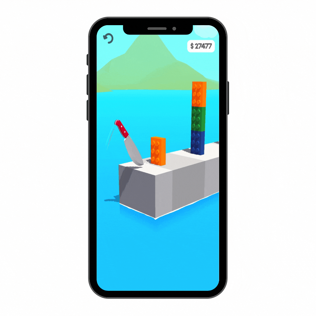 《切断一切》的玩法非常直接——你的总体目标是让刀片从位置A到达B,并确保在此过程中不从平台上掉落。而你的第二个目标则是切断尽可能多的障碍物,沿途收集分数和金币。本作采用点击机制让玩家移动刀片(玩家需要在恰当的时机点击屏幕),同时在玩家每次切割时都会带来ASMR/切割的爽快感,从而最大限度地提高玩家满意度。