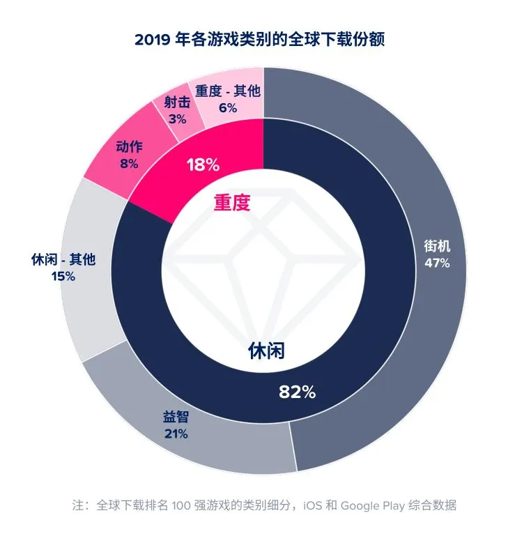 休闲游戏下载量最高,重度游戏时长占比高