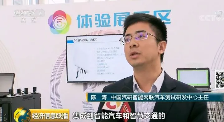 中国汽研智能网联汽车测试研发中心主任 陈涛:在未来的车联网,我们会把实时的路测信息、视频监控,依靠5G基站,集成到智能汽车和智慧交通的大系统里面去。