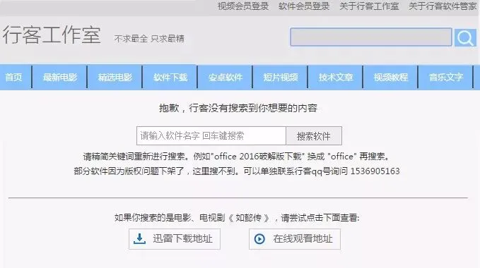 当然你不需要记住这个IP地址,已经和行客主站整合,直接去行客工作室主站www.runker.net 右上角搜索影片就行了。如果主站没有的电影,下面会提示直接跳转到电影分站下载,如下图搜索。