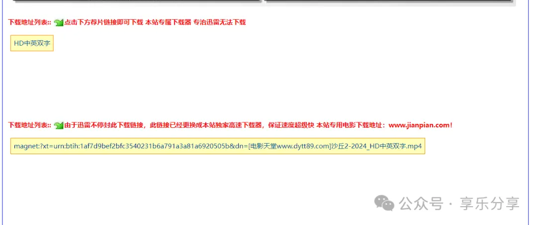 就影视资源站点类型来说,这个站点还是比较常规的,布局方面感觉也是中规中矩,资源存储方面采用了远古方式,但是也是最直接的方式:磁链。