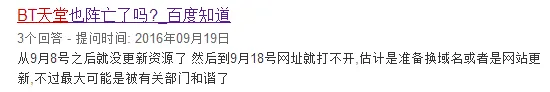 警察盯上BT天堂的人,此前就有过苗头。BT天堂的网站从9月8号之后就没更新资源,9月18号开始网站就已打不开。