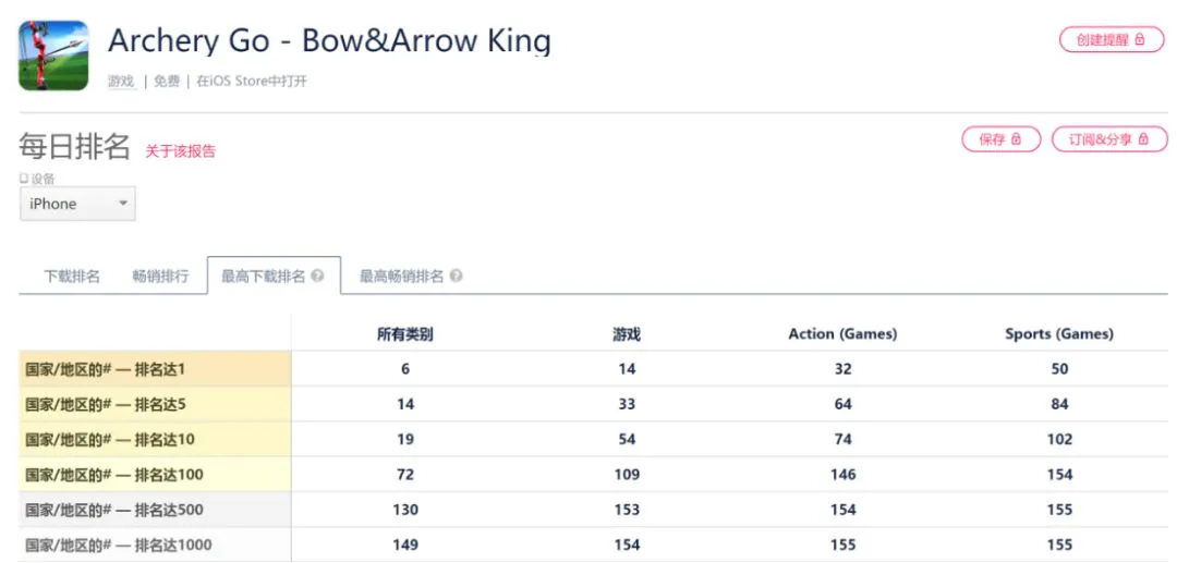 据App Annie数据,Archery Go目前已登上6个国家的App Store下载总榜第一,14个国家的游戏下载榜第一,并分别在32个、50个国家及地区的动作游戏/体育游戏分类榜单位列首位。