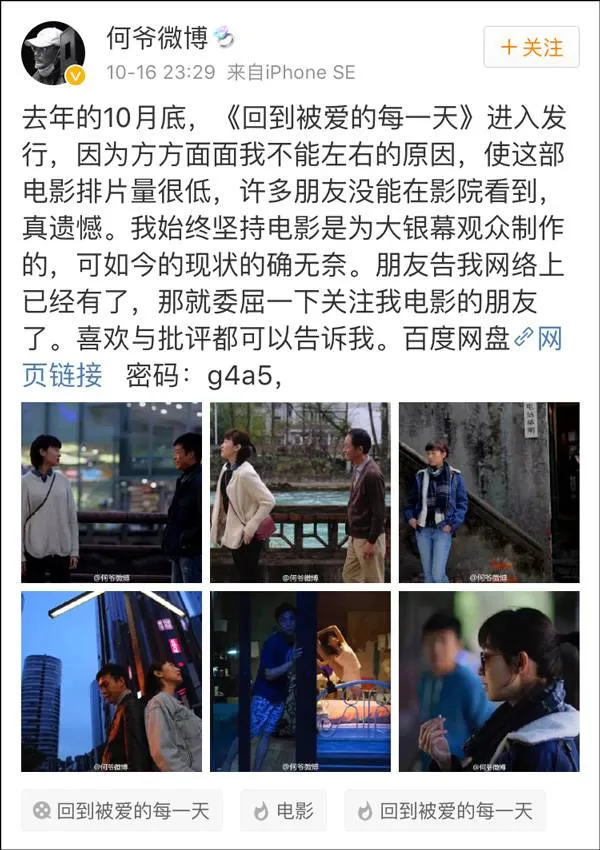 昨晚,何平导演在自己微博上放出了2015年最新导演的作品《回到被爱的每一天》。
