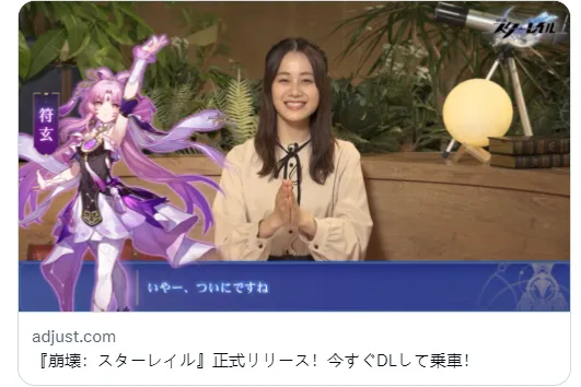《崩坏:星穹铁道》的直播的四位嘉宾是マフィア梶田、田中理恵、諸星すみれ、夢追翔。直播的主持是マフィア梶田,这位主持人也可以算是业界的名人了,很多知名的游戏的直播活动都是由他主持的。田中理恵和諸星すみれ作为游戏声优,这也是直播活动的标配。夢追翔是彩虹社的虚拟主播,从最近的几个知名游戏的上线前预热直播活动可以看出,彩虹社的虚拟主播也慢慢成了标配了。当然如果游戏的人设是福利向的,比如《胜利女神:NIKKE》,嘉宾中还可以邀请知名的cosplayer。