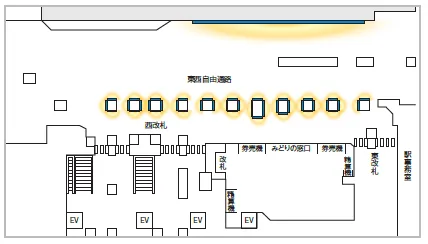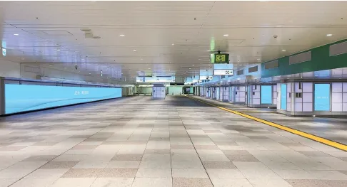 新宿的广告位,位于新宿地铁站的东西自由通道,左侧长型的电子屏拥有45.6m的长度,右侧的电子屏一共有39块,是地铁站中最吸引眼球的广告位。