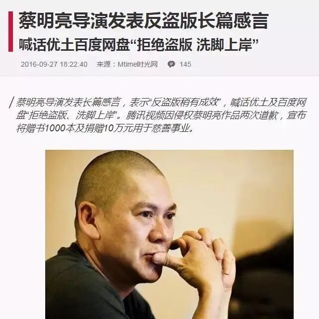 蔡明亮此前曾喊话网盘拒绝盗版,不知道何平此举蔡明亮会怎么看