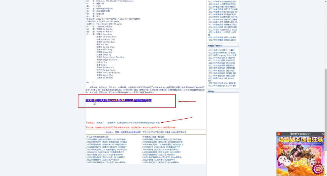 在使用前需要先安装迅雷软件,然后点击图上框起来的链接,迅雷就会自动弹出窗口解析磁力链然后进行下载,非常的nice,整体来说资源质量还是可以的,就是页面广告比较多