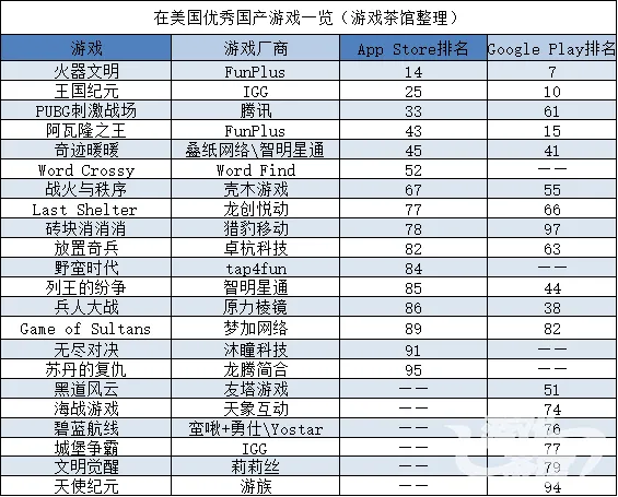 总体上,从上面国产游戏排名也能看出,美国市场是一个较难吃下的市场。美国本土游戏厂商研发实力强,手握一堆知名IP,在全球都很有影响力,基本把持着畅销榜的前列。■