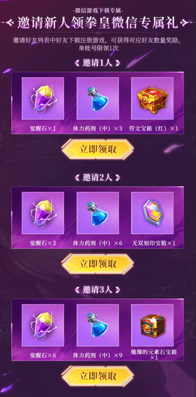 本次活动奖励获取分为2种方式,邀请新玩家加入或老玩家回归,均有机会获得相应奖励,具体礼包如下