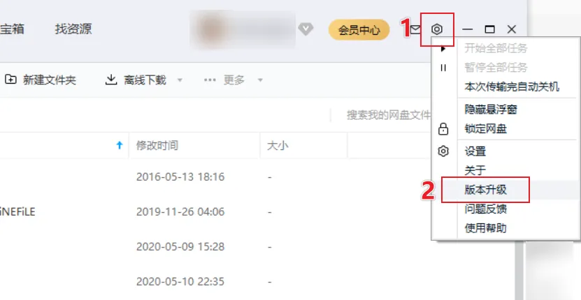 首先,需要将百度网盘更新到最新版本,升级操作途径:界面右上角小齿轮 - 「 版本升级 」。