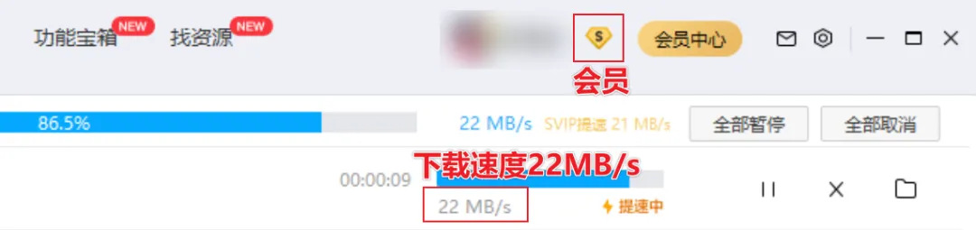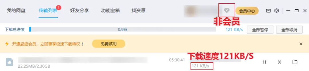 只有氪金开会员才能跑个几 MB/s,勉强维持一下生活这样子。