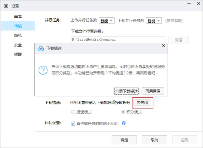 两者的区别是,提速模式换取的是更快下载速度,积分模式换取的是积分,积分可以用于换取百度网盘超级会员等。
