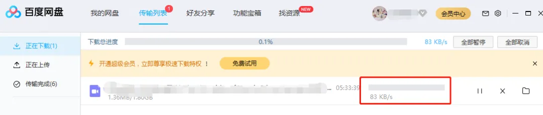 平时我们用百度网盘下载小视频,每秒能有个几百 KB ,就要偷笑了。百度网盘为了凸显超级会员速度有多快,时不时地会让非会员体验一下「极速下载特权」。