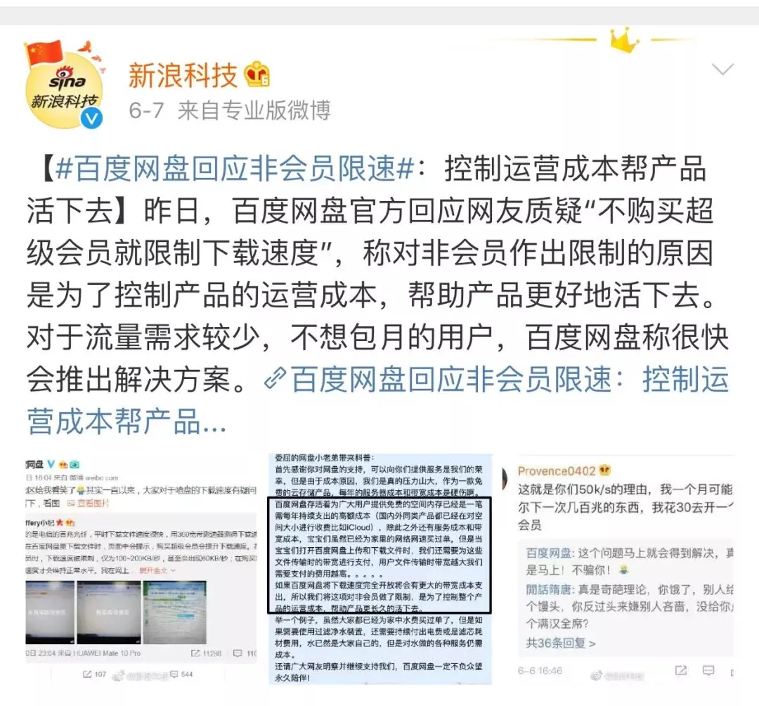 人家说,运营百度网盘需要非常大的开销,为了控制产品的运营成本,“不得不”给非会员限速,保证百度网盘能活下去。