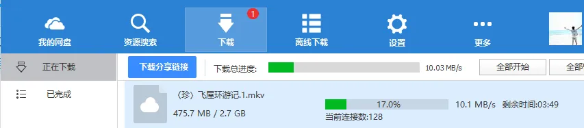 下面是速盘的下载速度,下载速度达到了10.1m/s,已经是满速下载了,若出现错误等待一会。