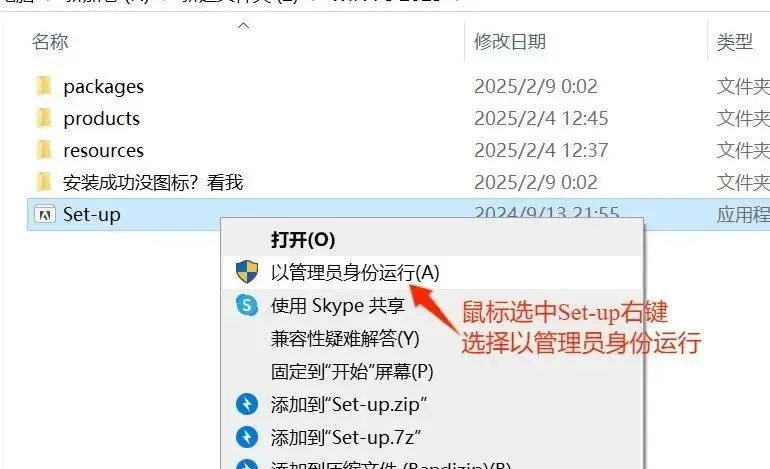 1. 运行安装程序:进入解压后的文件夹,找到并右键点击 Set-up.exe,选择“以管理员身份运行”。