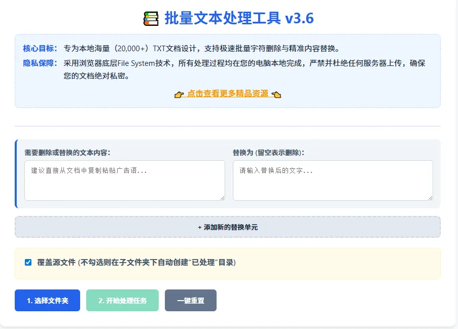 找工具一下子也找不到,于是我就自己用AI写了一个工具。如果你也需要批量处理txt文本内容的话可以用我的这个工具。
