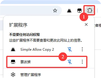安装后,在右上角应用扩展看到一个“猴头”图标
