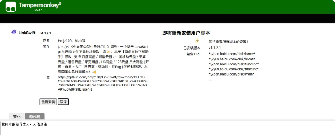 LinkSwift的GitHub中,打开 hmjz100/LinkSwift/(改)网盘直链下载助手.user.js 进行安装