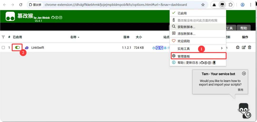 - 进入“管理面板”,确保LinkSwift已启用。到此