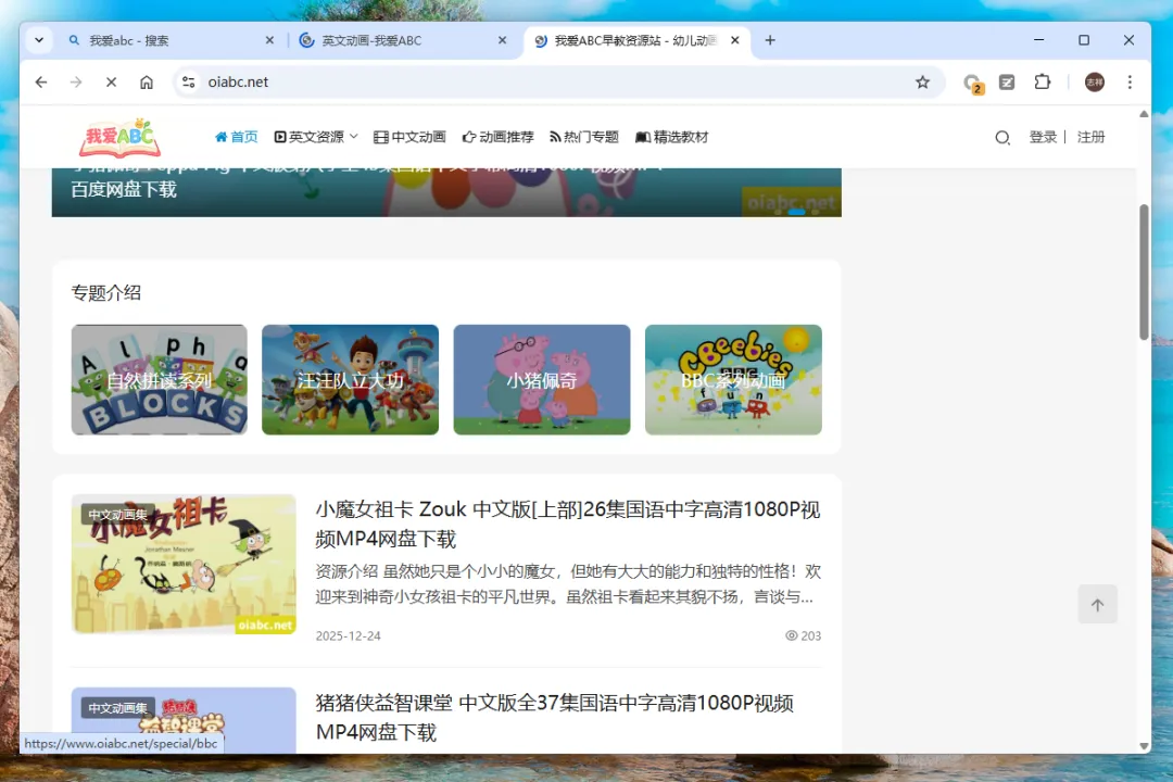 简介:我爱 abc 早教资源站是专注幼儿启蒙的优质资源分享平台,汇集海量动画、启蒙教材、儿歌、绘本等精选内容。资源覆盖语言启蒙、认知发展、艺术感知等多个早教场景,分类清晰、实用性强,旨在为家长、早教机构及幼儿教育工作者提供便捷、优质的早教资源获取渠道,助力孩子在趣味中开启启蒙之旅,轻松实现全面发展。