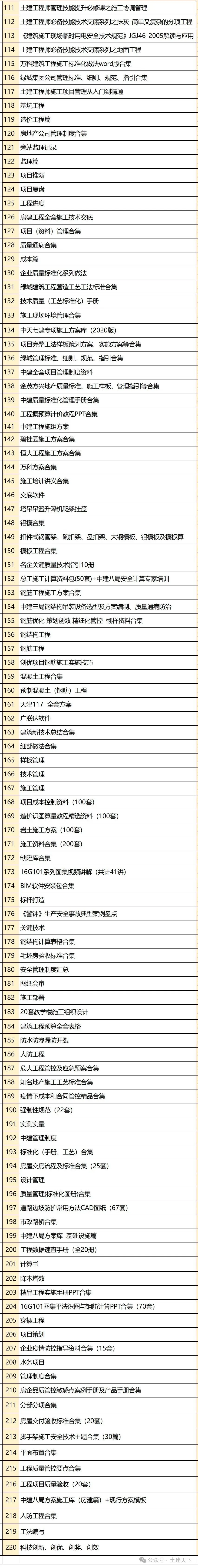 得到土建天下公众号上所有的资料以及后续无限更新;