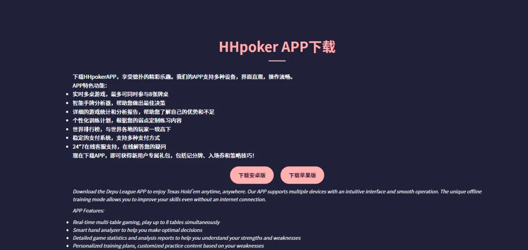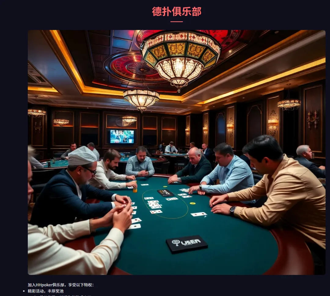 在这个快节奏的时代,你是否也渴望一方既能考验智慧又能释放激情的天地?当牌桌铺开,筹码就位,一场无声的战争已然打响——欢迎来到HH扑克,一个真正理解玩家、尊重竞技精神的德州扑克平台。
