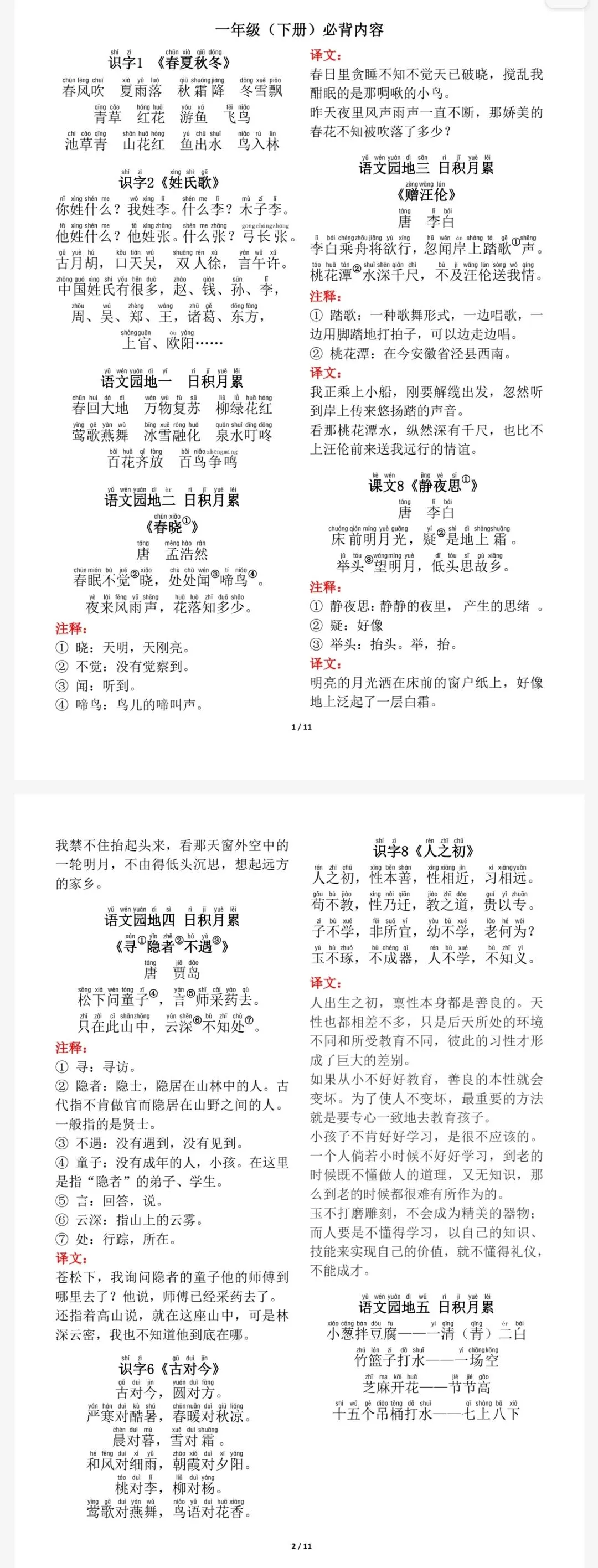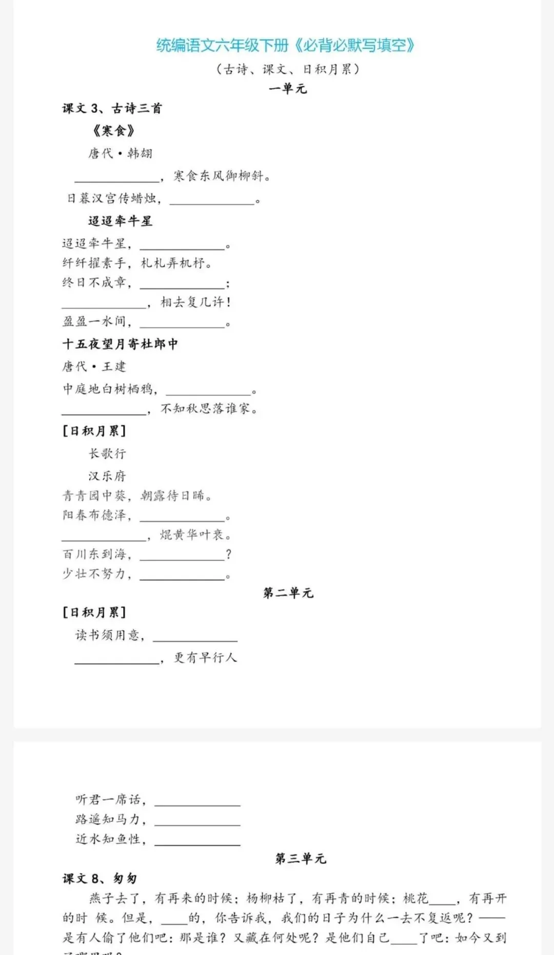 >(直接下载,不用网盘)1-6年级下册必背内容寒假预习