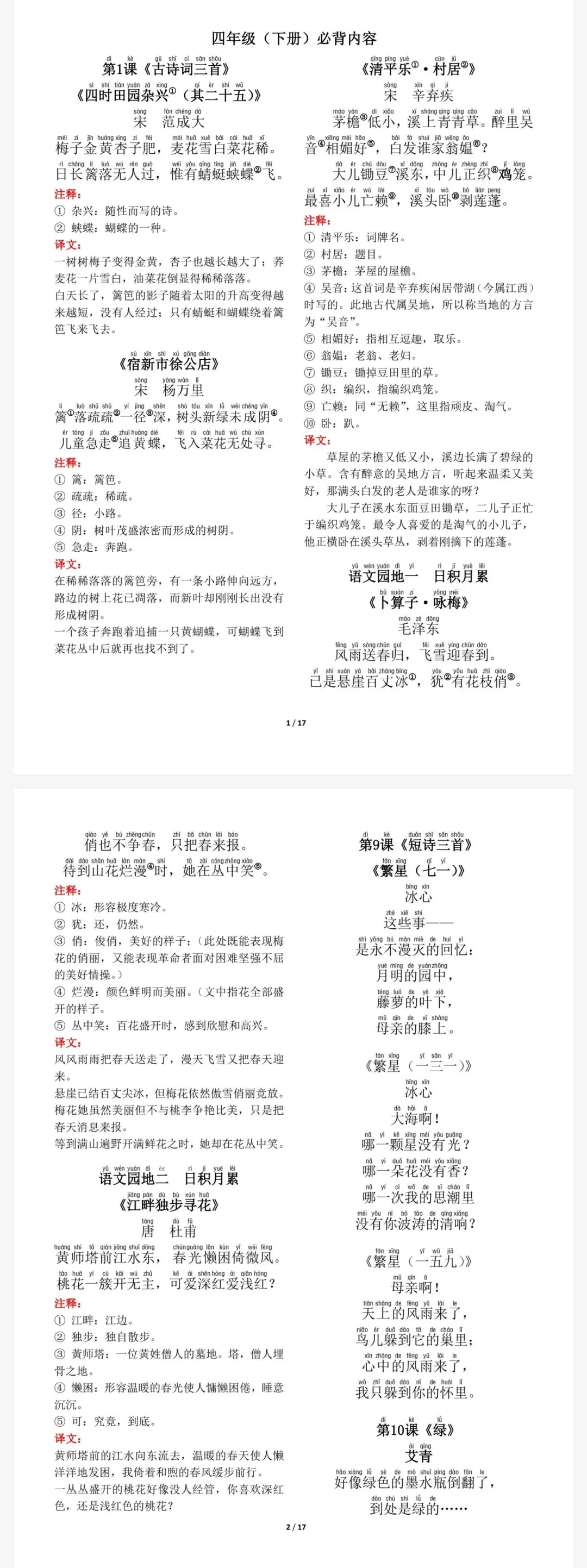 四下语文背诵默写(古诗+课文+日积月累).pdf