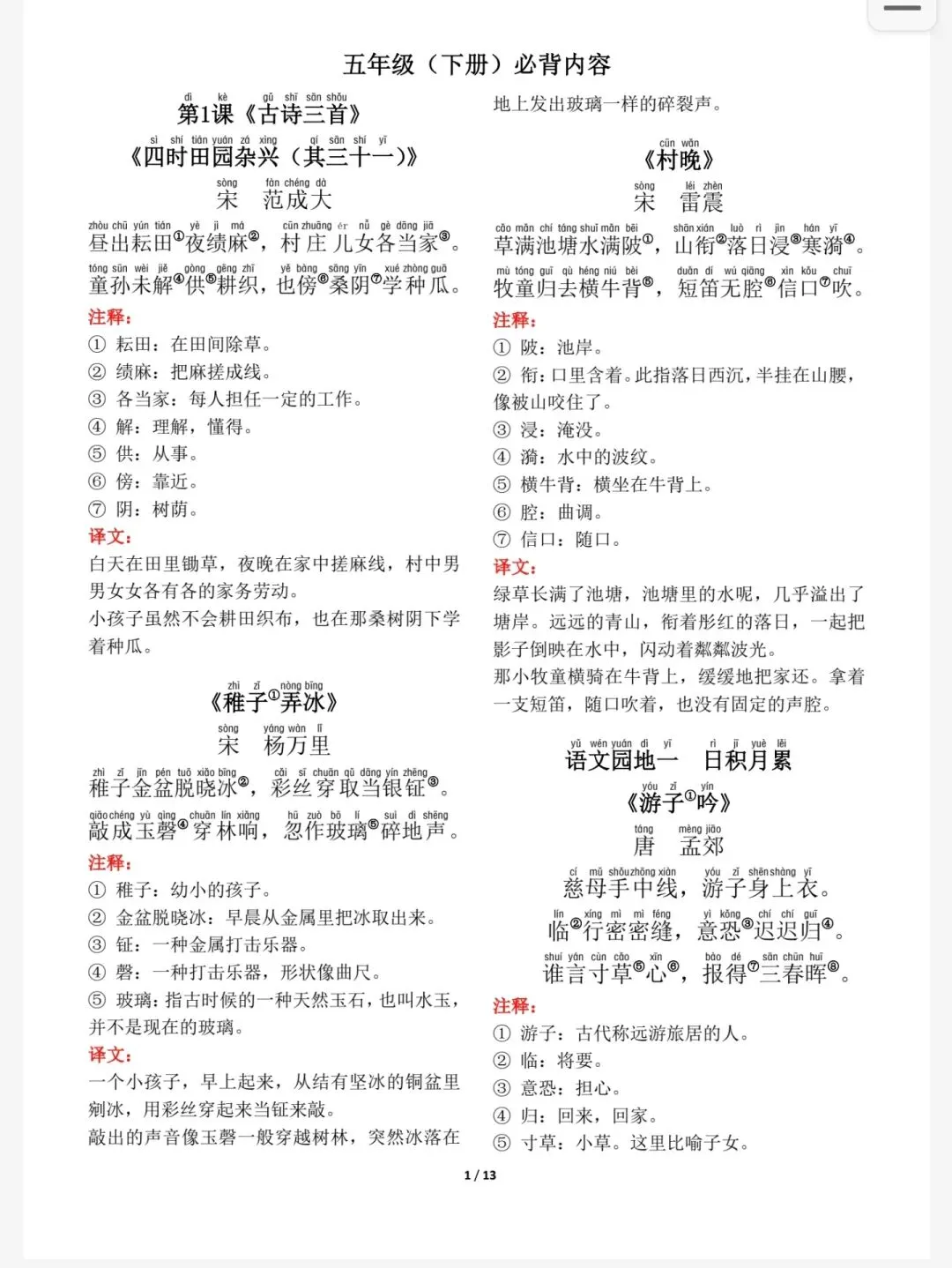 五下语文背诵默写(古诗+课文+日积月累).pdf