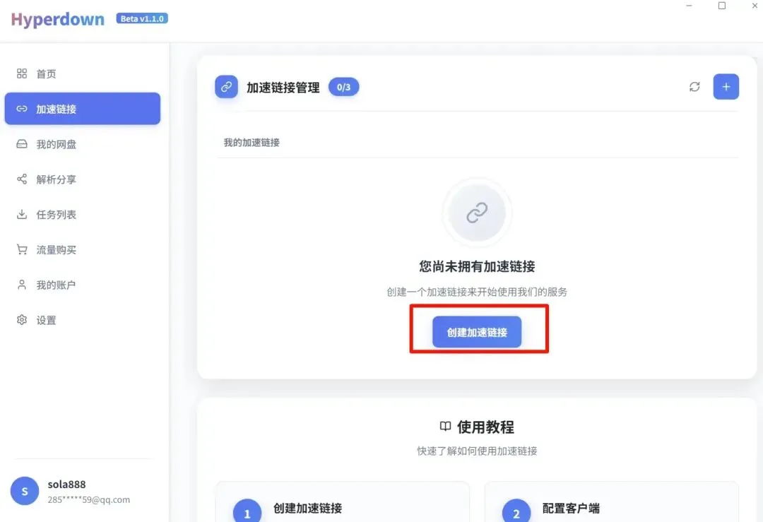 5、接下来说第二种:也可以直接解析链接,点击创建加速链接,粘贴分享链接,点击确认添加,也可以不限速下载!