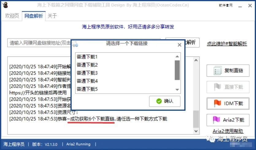 有的网盘会解析出多个普通下载链接,有的链接有效,有的无效。