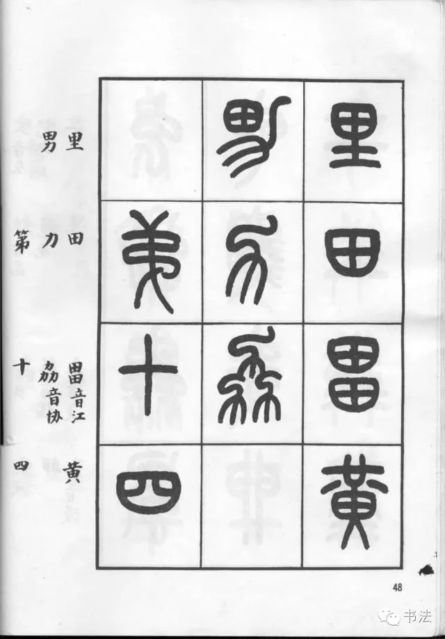 王福庵的《说文部首》是他的典型代表作之一,其用笔纯净单一,提 按、起止、转折都达到了圆润浑厚的立体效果,结体均衡准确又饶有韵 致,篆法规矩又不失灵动,反映了他在小篆把握上的成熟和表现上的极 致。下面我们以此为蓝本,择字进行具体的技法分析指导,以期对小篆 有一个初步的了解。初学者从偏旁部首入手,不仅能掌握小篆的结体、用 笔,而且在识篆上,也会打下扎实的基础。