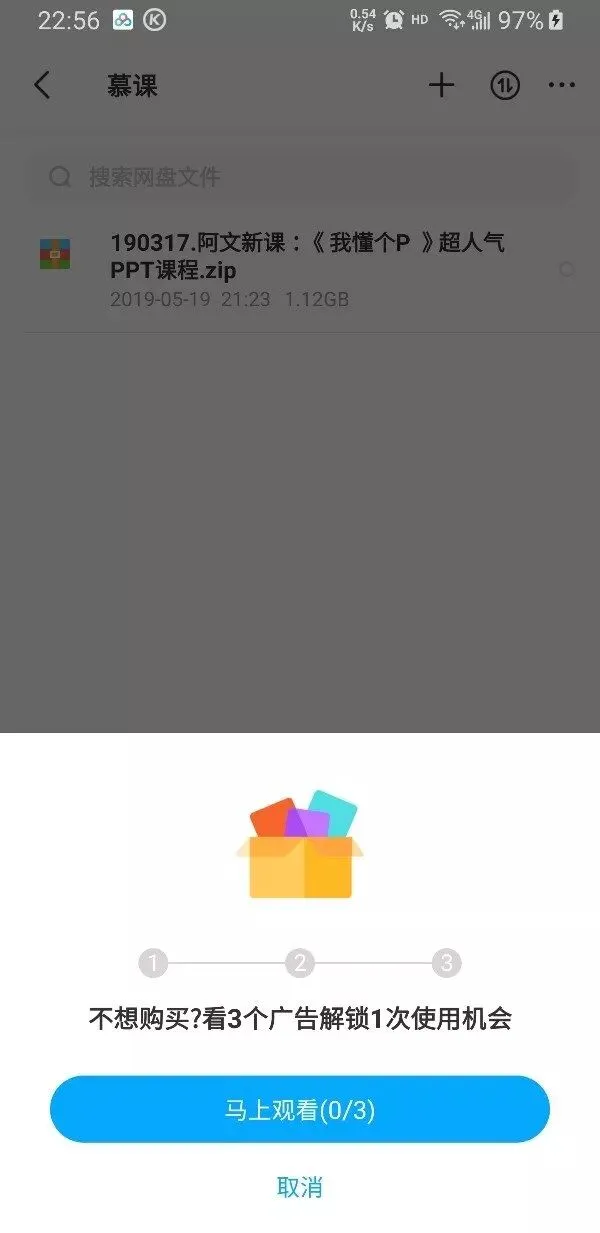 据用户反馈,现在百度网盘手机App推出了观看广告解锁下载加速和在线解压特权。
