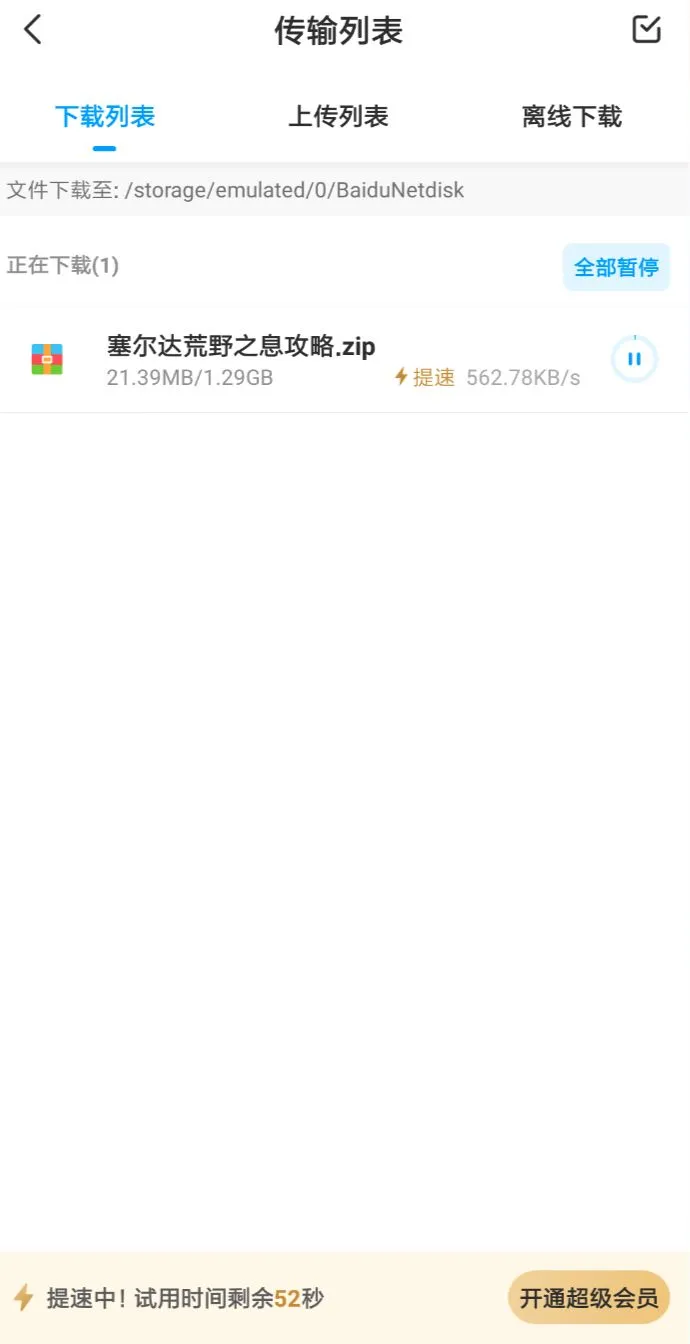 用这种方式获得的百度网盘免费提速,一次可以维持60秒。