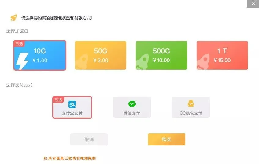 如果是个人正常使用,从上面的价格来看,算是非常便宜了。1T的加速包,我估计够普通用户使用一年。加速流量是没有时间限制的。(我能舍得让大家花钱?)