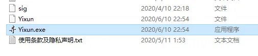 下载软件后,首先我们需要将压缩包解压,文件名为“Yixun.exe”的文件就是软件的主程序,双击打开即可。