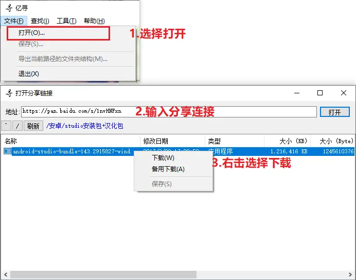 在程序的左上角,选择 文件 > 打开,在地址栏输入分享链接,打开后直接右击选择下载就能直接高速下载!