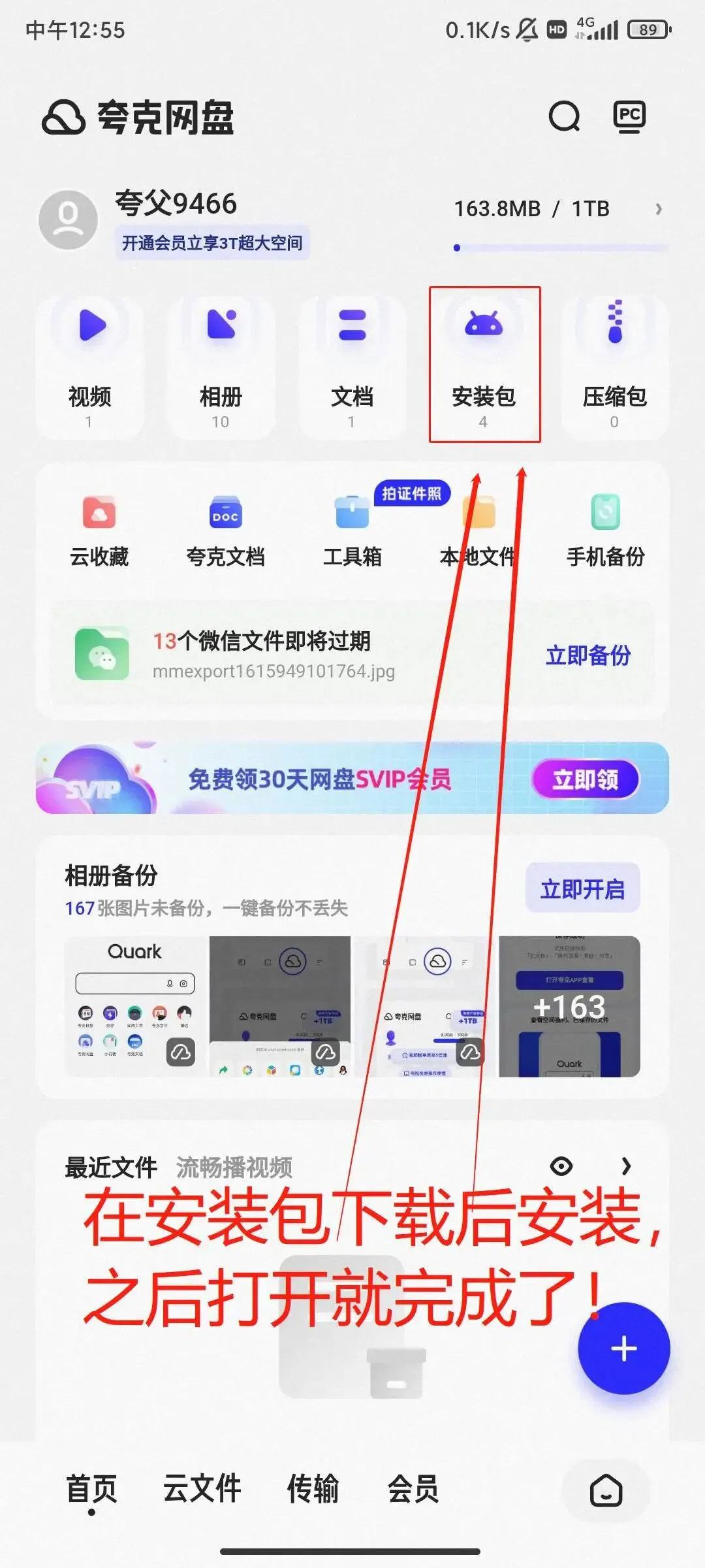 第一步:后台链接中,点击【保存到网盘】——输入手机号获取验证码——保存成功——下载夸克APP——登录刚注册的手机号——打开查看夸克网盘安装包——下载安装资源就完成了