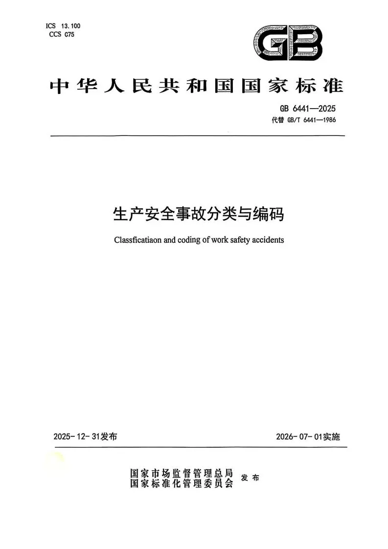 >【新标学习】(网盘下载)GB 6441-2025生产安全事故分类与编码 — 事故种类从20种增至29种