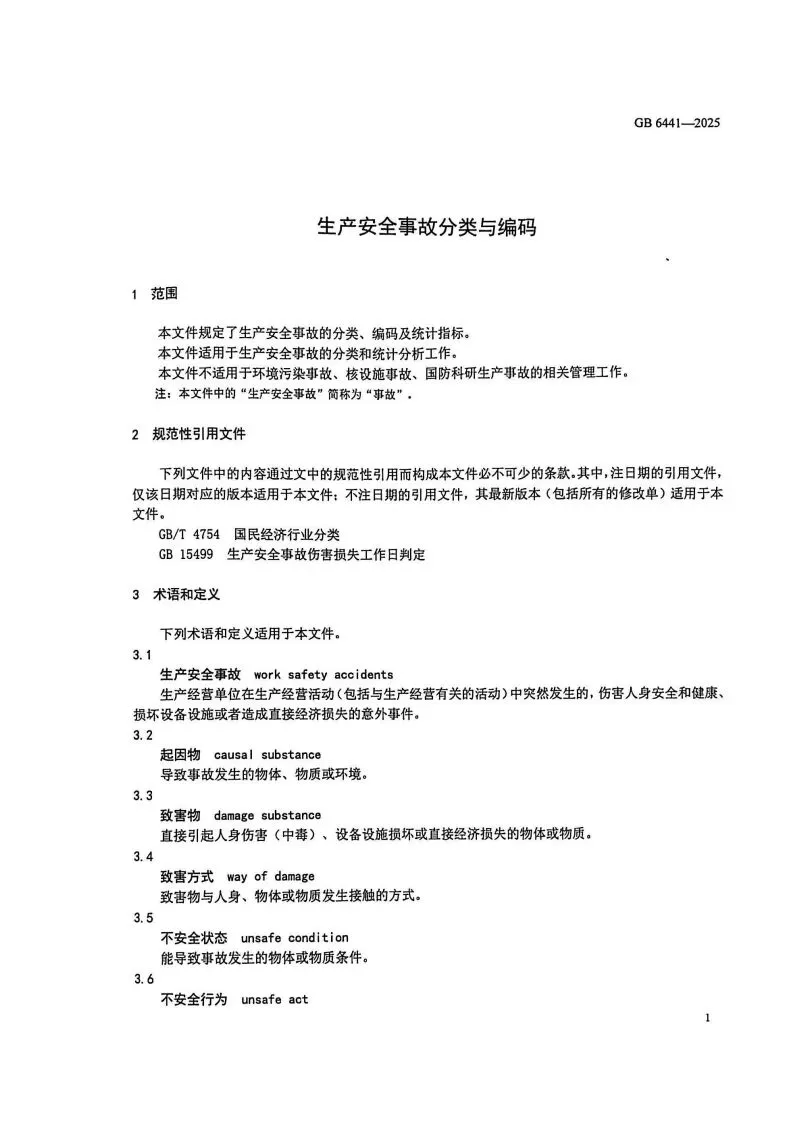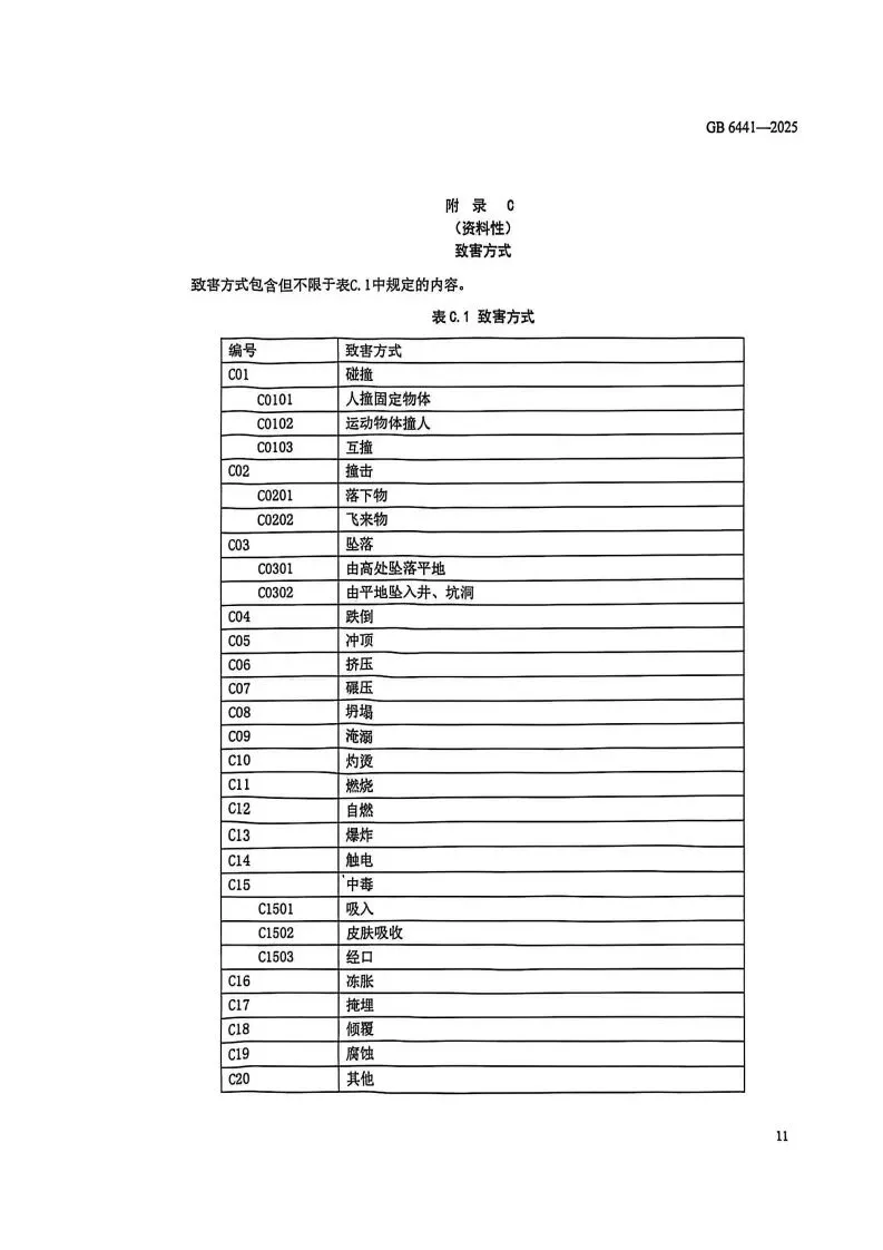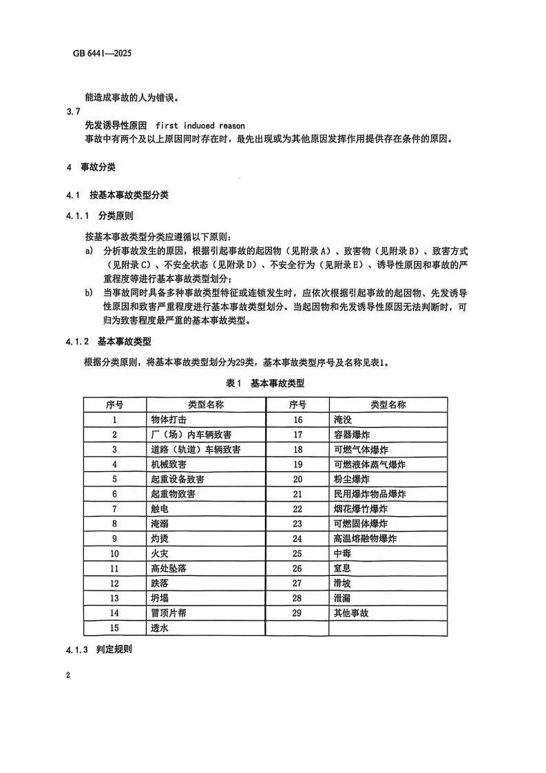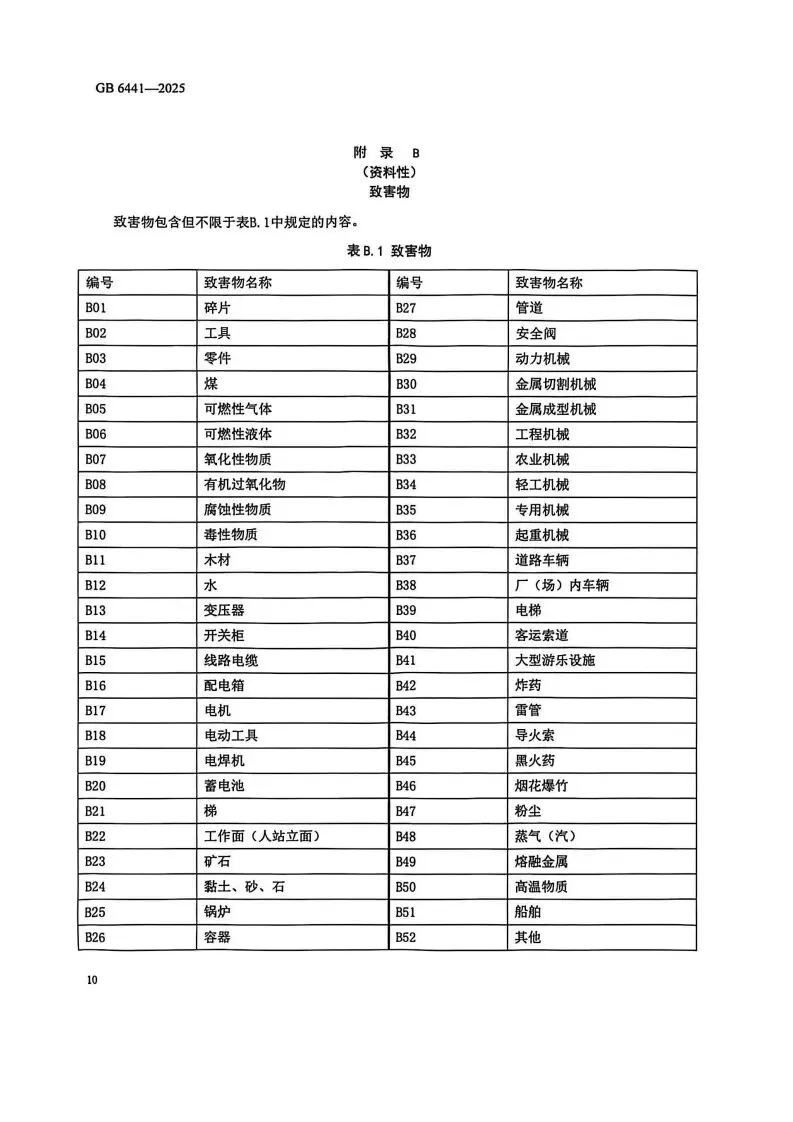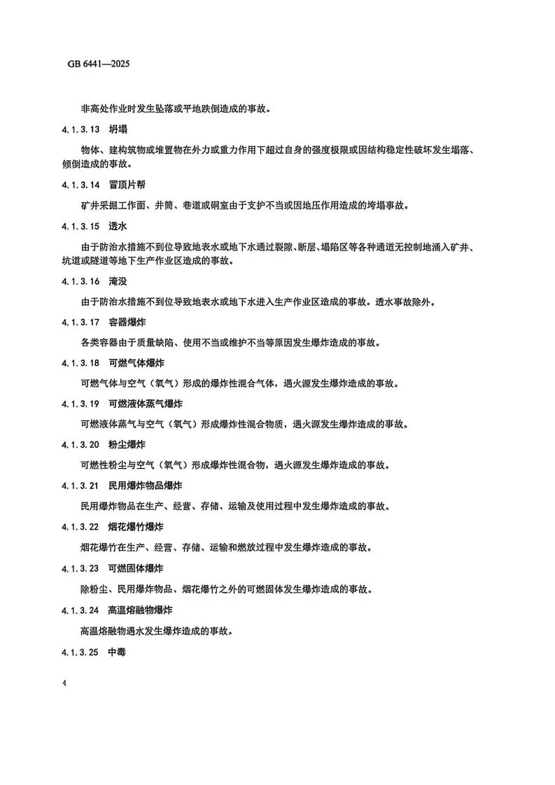 【新标学习】(网盘下载)GB 6441-2025生产安全事故分类与编码 — 事故种类从20种增至29种