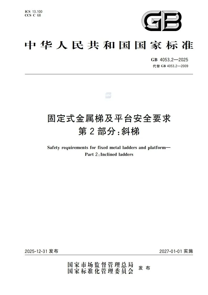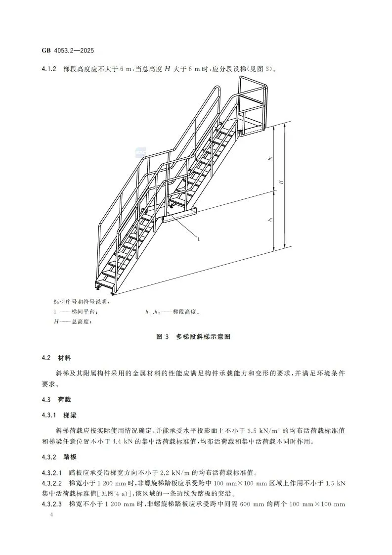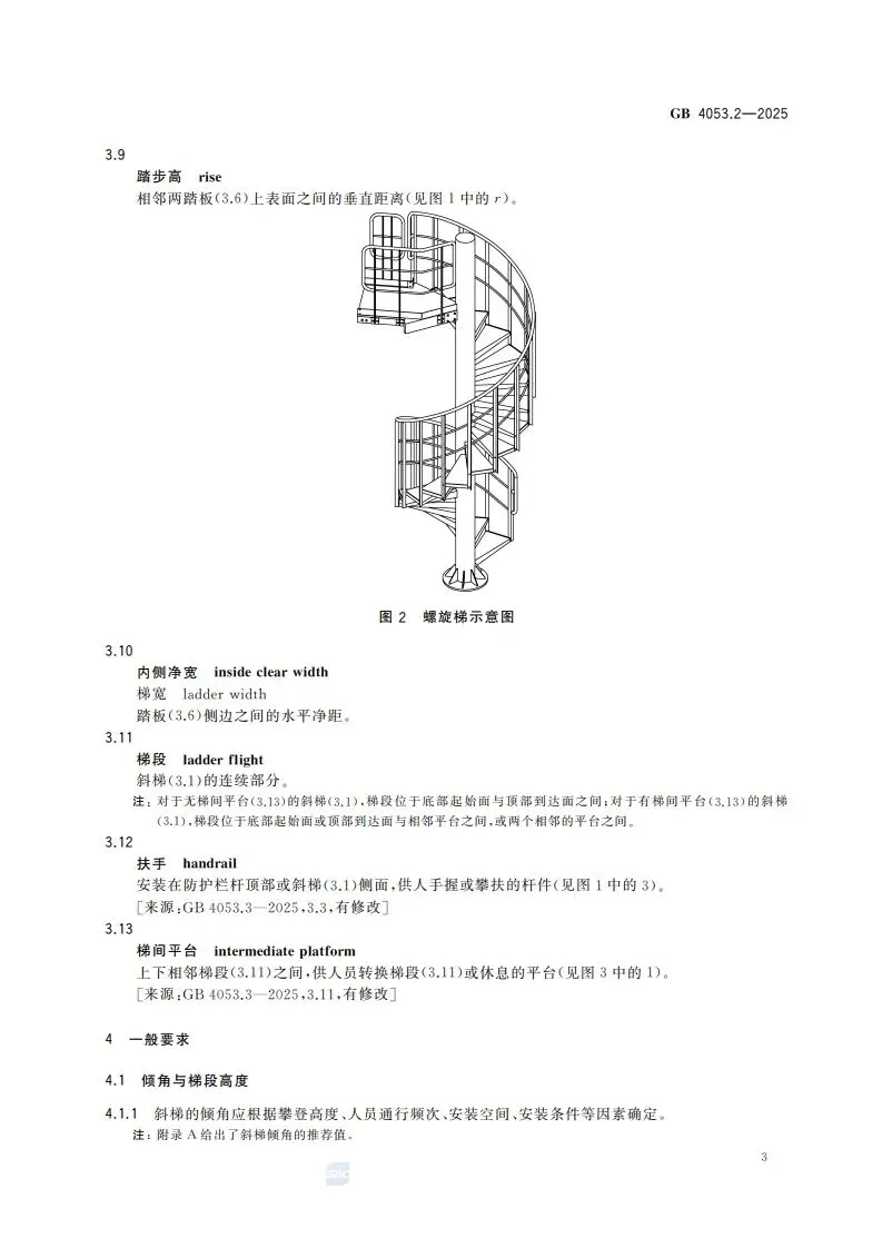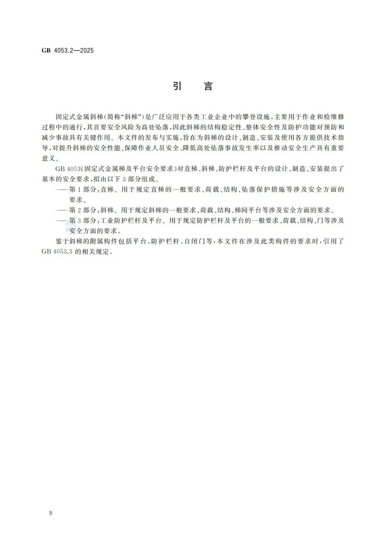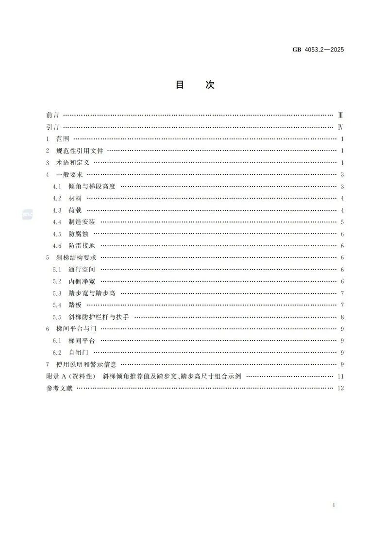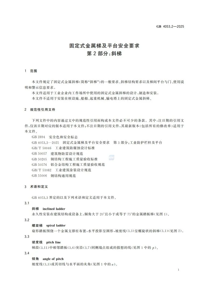 >【新标学习】(网盘下载)GB 4053.2-2025固定式金属梯及平台安全要求 第2部分:斜梯