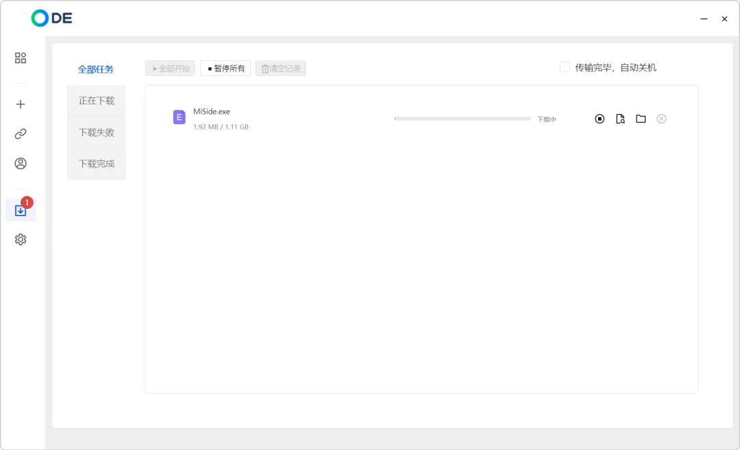 于是,这个下载任务,便会在传输列表中实时反馈出来(下载速度,跟使用时间有关,一般来讲,白天下载会快):