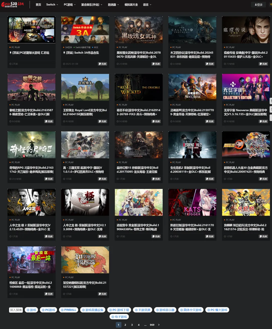 整合的资源,从PC游戏到手机游戏,从游戏补丁到游戏工具,分门别类。