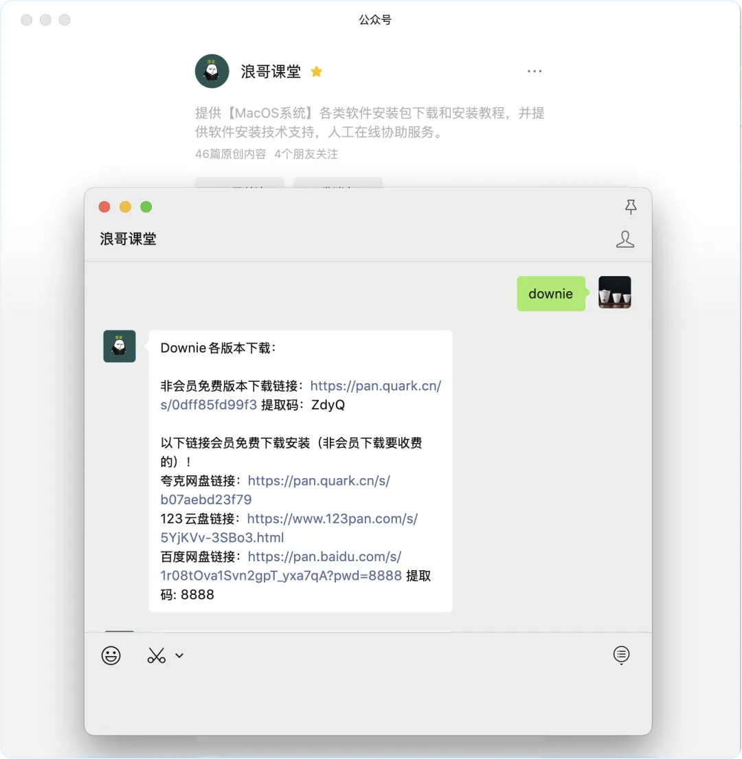在「浪哥课堂」公众号后台回复:Downie 即可获取网盘下载链接!