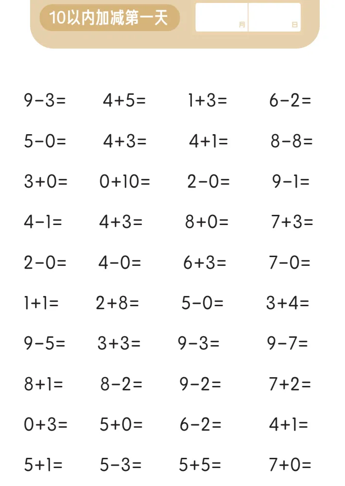 幼小衔接10以内加减计算,网盘免费分享【可下载打印pdf版】