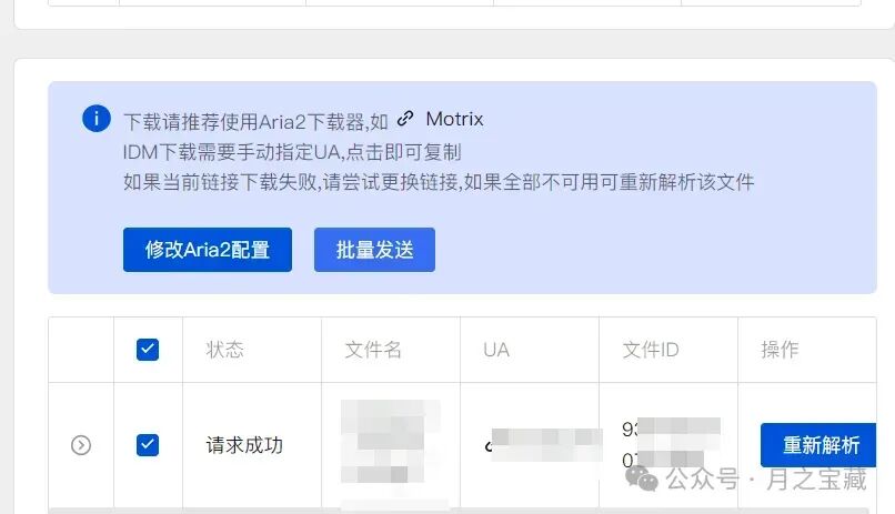 之后我们回到解析界面,记得把我们解析好的任务勾选上,然后点击批量发送。然后我们回到下载的Motrix上面,会看到我们解析的任务已经正在下载了。