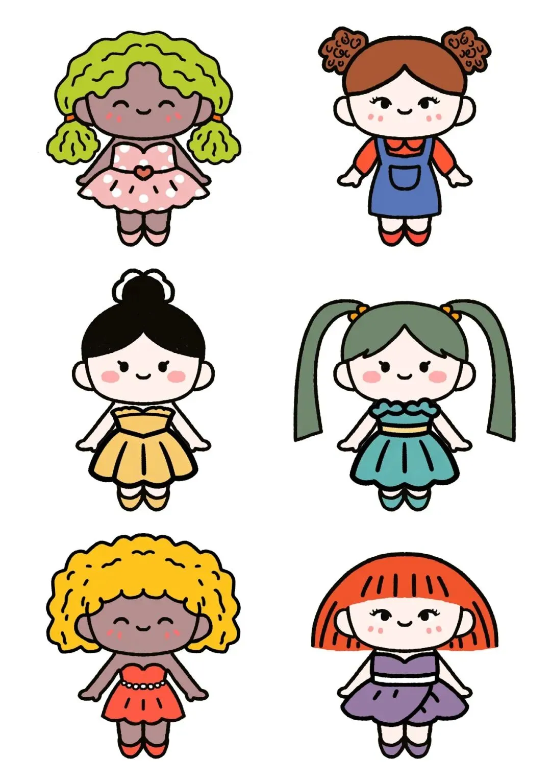 >换装游戏简笔画素材图纸可下载打印