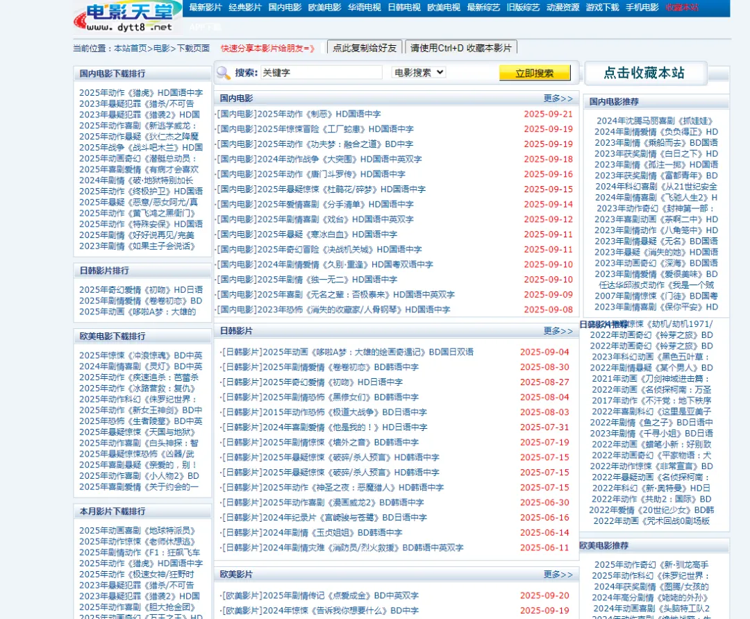 今天就给大家整理了一批亲测可用、各有特色的电影下载网站,尤其要重点推荐老牌宝藏平台「电影天堂」,覆盖大众刚需、高清画质、小众冷门等多种需求,不管你是追剧达人还是资深影迷,都能找到专属观影利器✨